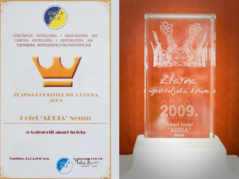 Vítězové restaurace koruny Golden jsou: Hotel Aquareumal "Fojnica (kategorie rok-dokola cestovního ruchu a stravovací služby), penzionu" KIWI "Grude (v kategorii motel), s výjimkou hotelu" Adria "Neum (kromě hotelů), hotel" TEREX "East Sarajevo (hotely tři hvězdičky), vinný sklep, "SIVRIĆ" (vinný sklep), Hotel "Evropa", Sarajevo (pěti-hvězdičkové hotely), Boro Brešić, zaměstnanec "Bacchus" restaurace v nákupním středisku Livno (nejlepší číšník), Hotel Adria lyží Kupres ( středisek zimních turistických), Gordon Puljić, vedoucí recepce v hotelu "ERÚ" Mostar (nejlepší recepční), City Cafe Hotel "PARK" Široki Brijeg (káva klub), Hotel Mogorjelo "Čapljina (čtyři hvězdy), caffe pizzerie" MOCART "Foca (CAFFE), turistické destinace," Herceg "Medžugorje (turistické letovisko), hotel" PIRG Bijeljina (pěti-hvězdičkové hotely s kapacitou 100 lůžek), Edvard Kapetanovic (nejlepší manažer v oblasti pohostinství), Motel CICIBELA "Brčko (motely ), penziony "MISIRLIJE" Srebrenice (důchody), hotel 'STARÉ MĚSTO "Mostar (zachování původního graditeljse dědictví), Hotel" Holywood "Ilidža (kontinuitu a kvalitu vývoje), mezinárodní restaurace" barrique "Široki Brijeg (Mezinárodní restaurace), Ćevabdžinica" DRAGON "Sarajevo (Čevabdžinica), ethno-seo" BEGOVO VESNICE "Nišići (etno vesnice), restaurace" JEZERO "Banja Luka (národní restaurace), restaurace grappolo" v hotelu "BROTNJO" Čitluk (restaurace v hotelu), atd. sc. Nevenko Herceg, spolkový ministr pro cestovní ruch a životní prostředí (za mimořádný osobní přínos k rozvoji cestovního ruchu a pohostinství v Bosně a Hercegovině a systematické práce zaměřené na zařazení BH jako žádoucí turistickou destinaci).